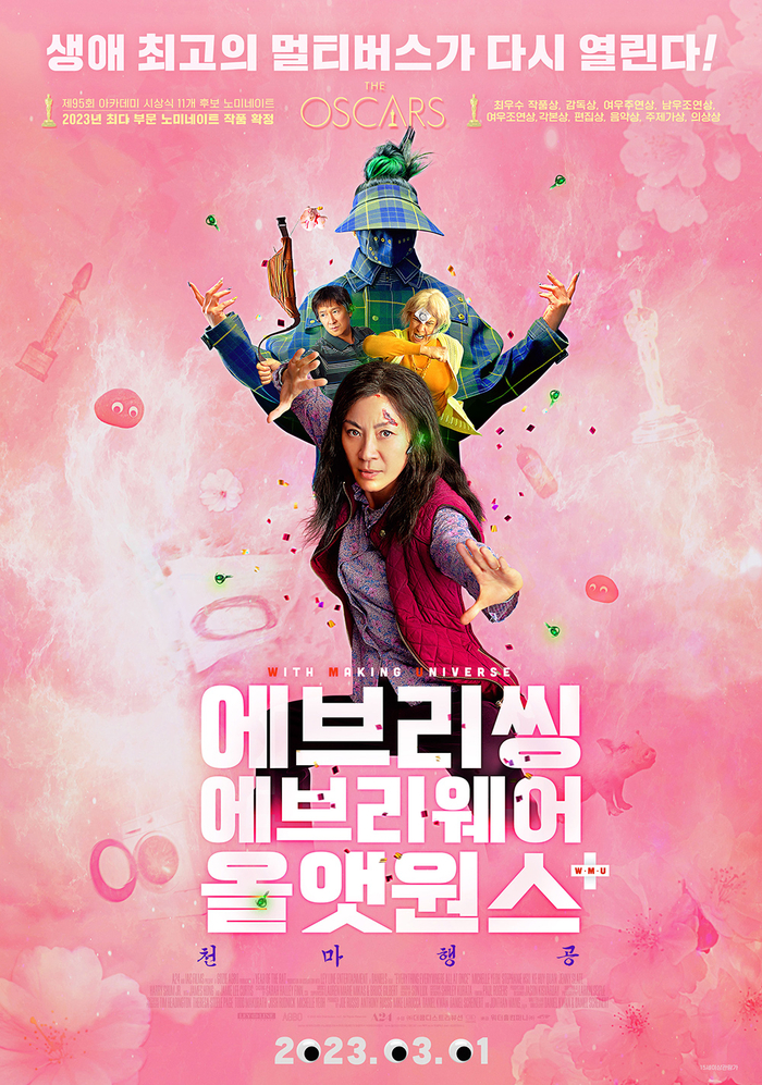 '미나리' '미드소마' '문라이트' 등 대중성과 작품성을 모두 놓치지 않는 해외 배급사 A24의 작품으로, '어벤져스: 엔드게임' 루소 형제가 제작하고 탈우주급 세계관을 자랑하는 '스위스 아미 맨'의 다니엘스 듀오가 감독을 맡아 글로벌 센세이션을 불러 일으켰다.
