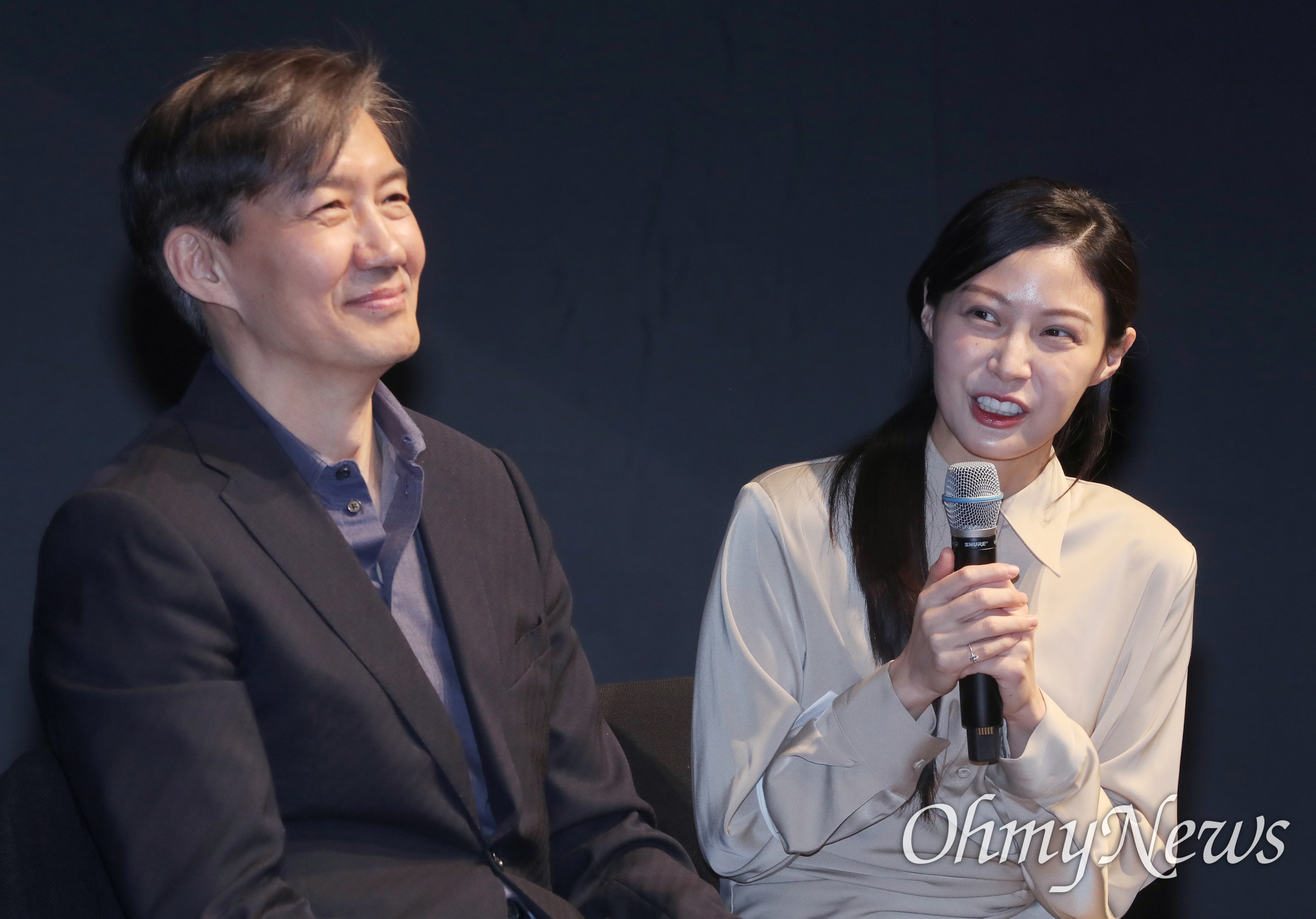 관객들의 박수를 받으며 무대에 오른 조씨는 아버지 조 전 장관의 옆에 앉았다. 아버지 조 전 장관 옆에 나란히 앉은 조씨는 오 대표가 “아버지 책을 읽었는지” 묻자 “솔직히 말씀드리면 이 책을 다 읽지는 못했고, 반은 넘었다”고 말했다. 그는 아버지의 책 내용 중 ‘앞으로 지니고 살아야겠다’라고 생각한 부분을 묻자, 무릎 위 책을 뒤적이다 존 스튜어트 밀의 ‘개성’을 꼽았다. 조씨는 또 MBTI 질문에 “아버지가 ISTJ”라며 “청렴결백한 논리주의자”라고 한다고 설명했다. 이 영상을 접한 네티즌들은 “너무나 보고 싶었던 모습이다” “아빠와 딸이 보기 좋다” “법학자 조국을 존경하고 그의 딸 조민을 응원한다” 등의 반응을 보였다.
