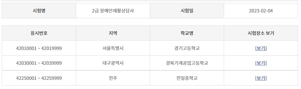 2023년 2월 4일 필기시험장소입니다.