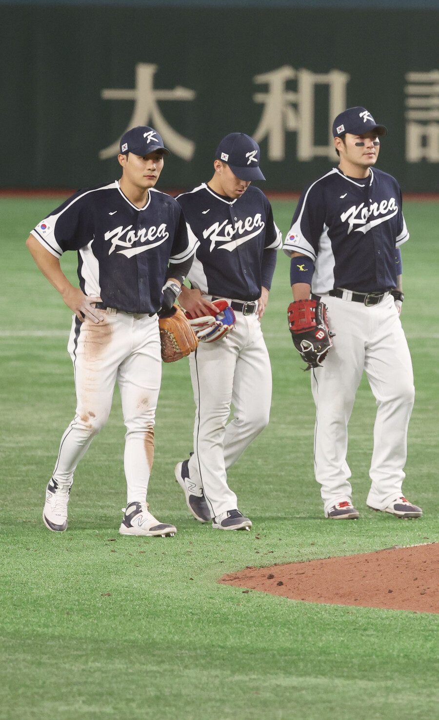 한국은 이날 무려 9명의 투수를 투입했지만 어느 하나 깔끔하게 막는 투수가 없었고 일본 타자들에게 난타당하며 대량 실점했습니다. 이날 선발로 나선 김광현(SSG 랜더스)은 1회와 2회 혼신의 힘을 다해 일본 타선을 틀어막았습니다. 하지만 3회 대량실점하는 상황에서도 투수를 교체하지 못했습니다. 이후 등판한 1999년생 정우영(LG 트윈스)과 2000년생 김윤식(LG 트윈스), 2002년생 이의리(KIA 타이거즈) 등 KBO리그를 호령했던 '영건' 투수들도 모두 대량 실점의 모습을 보였습니다. 구창모는 아웃 카운트 하나만 잡고 안타 2개를 맞았고, 이의리도 제구 난조를 그대로 노출하며 볼넷 3개를 헌납했습니다. 한국은 김윤식, 정우영 등이 등판한 6회에 5실점 하며 사실상 경기를 내줬습니다.